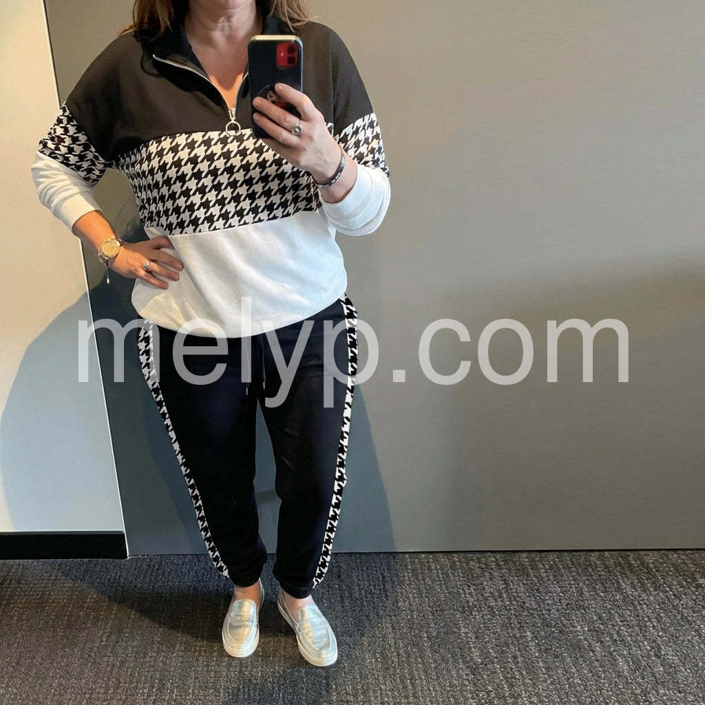 This elegant two-piece set features a unique houndstooth print for a sophisticated touch. With long sleeves, it is perfect for cooler weather and adds a touch of elegance to any outfit. Made with quality materials for a comfortable fit and lasting appeal.