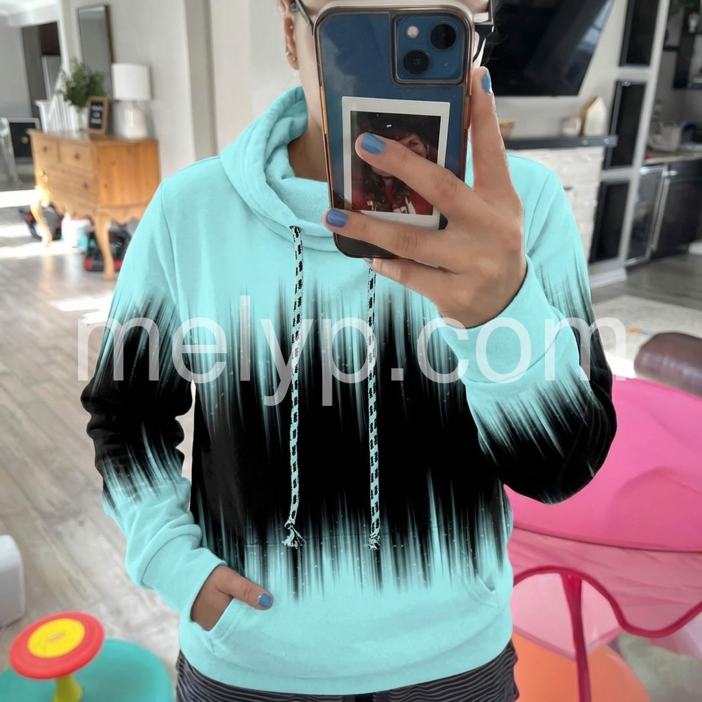 Aqua & Black Ombre Rain Hoodie Drawstring Sweatshirt