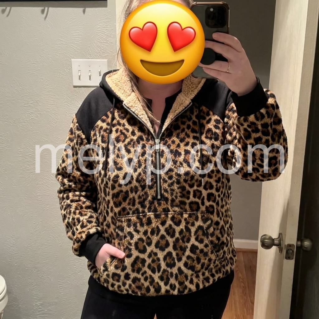 Make a statement with this striking leopard print sweatshirt, designed for those who embrace bold fashion choices. The soft fuzzy lining provides exceptional comfort and warmth, perfect for layering or wearing solo during cooler months. The classic leopard pattern adds timeless appeal to your casual wardrobe, while the relaxed fit ensures all-day wearability. Whether you're running errands or meeting friends, this versatile piece transitions effortlessly from day to night. Durable construction means it'll remain a go-to favorite season after season.