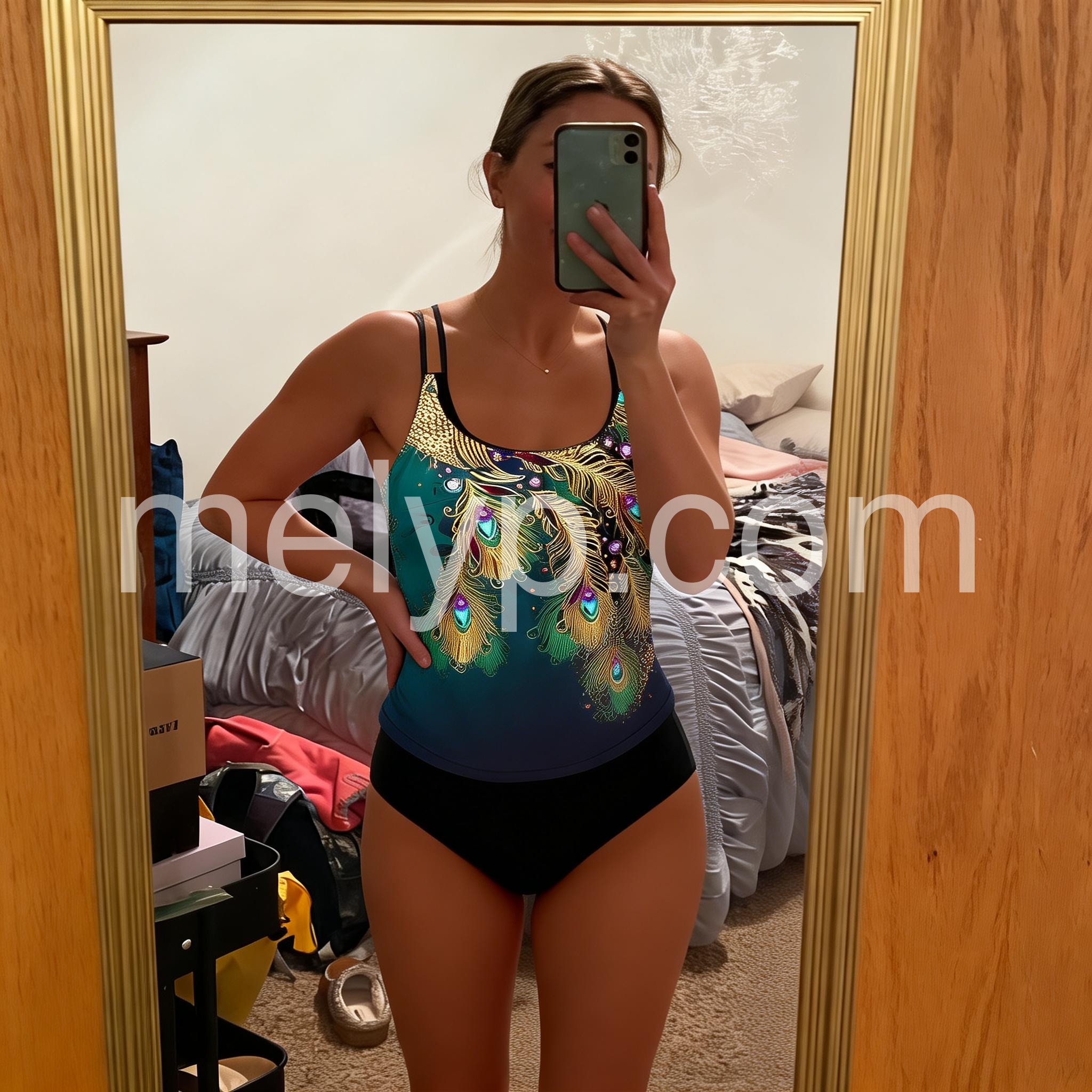 This stylish swimwear features a stunning green print that is sure to turn heads at the pool or beach. Made with high-quality materials, it offers both comfort and durability for all-day wear. Perfect for making a statement and standing out from the crowd.