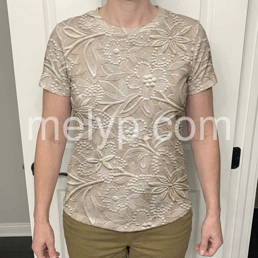 I was a bit skeptical about buying clothes online, but this shirt exceeded my expectations. The material is surprisingly soft against the skin, and the embossed floral design is stunning. It has held up great in the wash without losing its shape or texture.