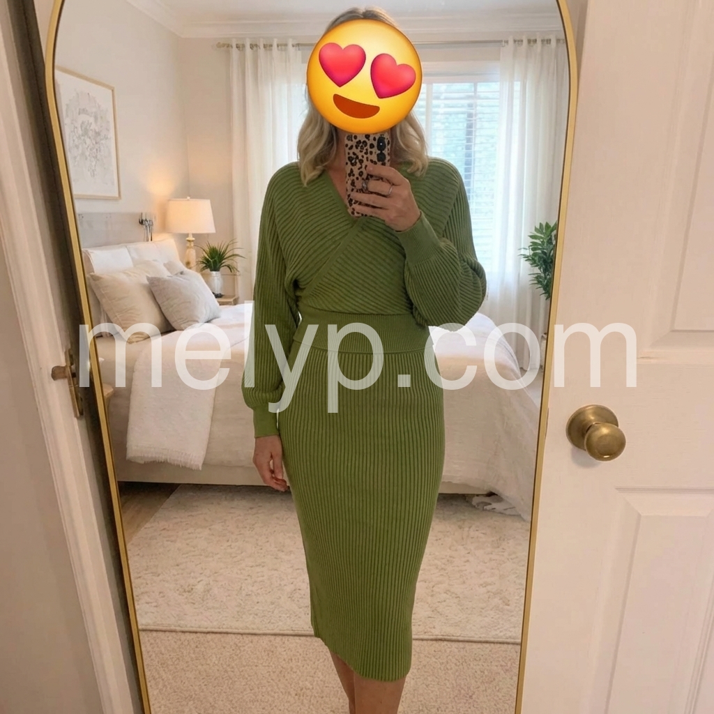 Upgrade your winter wardrobe with our Green Long Sleeve Plain Midi Sweater Dress. The stylish midi length and comfortable long sleeves make it perfect for any occasion. Stay warm and fashionable with this versatile piece.